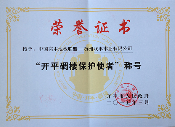 聯(lián)豐地板被授予“開平碉樓保護使者”榮譽稱號