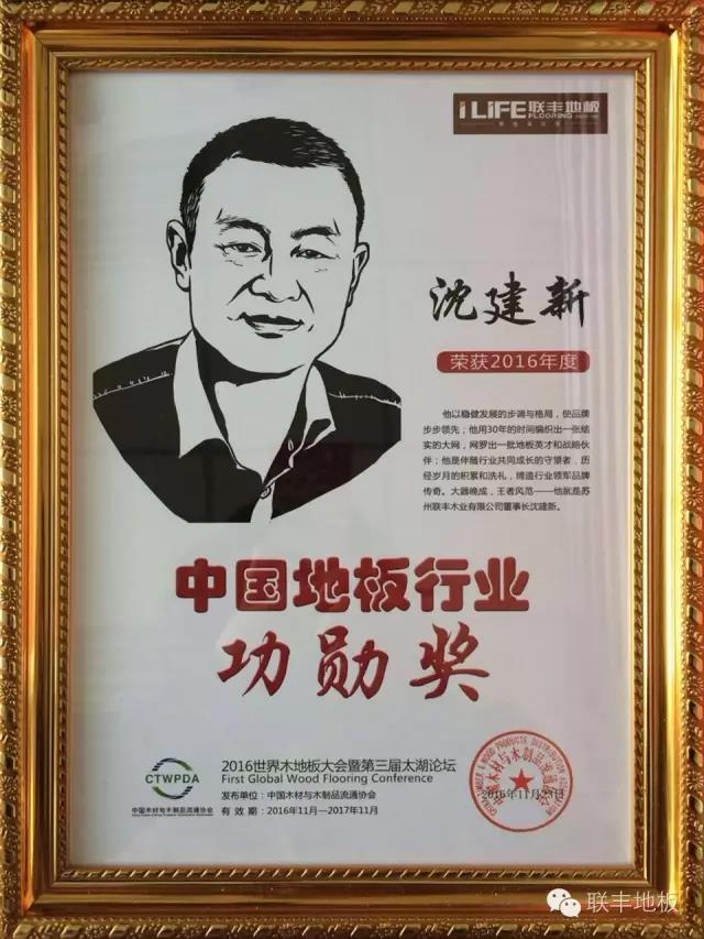 11月23日,在首屆世界木地板大會暨第三屆太湖論壇頒獎盛典上,蘇州聯(lián)豐木業(yè)有限公司沈建新董事長榮獲“中國地板行業(yè)功勛獎”。大器天成,歷經(jīng)歲月的積累和洗禮,終見王者風(fēng)范。