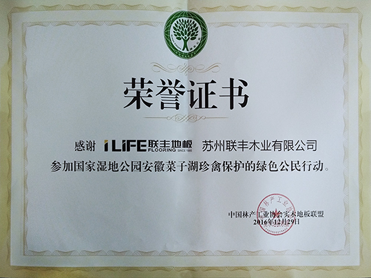2016年12月29日,中國林產(chǎn)工業(yè)協(xié)會實木地板聯(lián)盟與中國綠化基金會共同主辦的綠色公民行動走進安徽安慶菜子湖國家濕地公園——國家珍禽保護活動順利舉行,國家林業(yè)局、中國綠化基金會、中國林業(yè)產(chǎn)業(yè)聯(lián)合會、安徽省林業(yè)廳、安徽省濕地保護中心、安慶市等相關(guān)領(lǐng)導(dǎo)以及來自中國實木地板聯(lián)盟的企業(yè)代表共同出席本次活動。