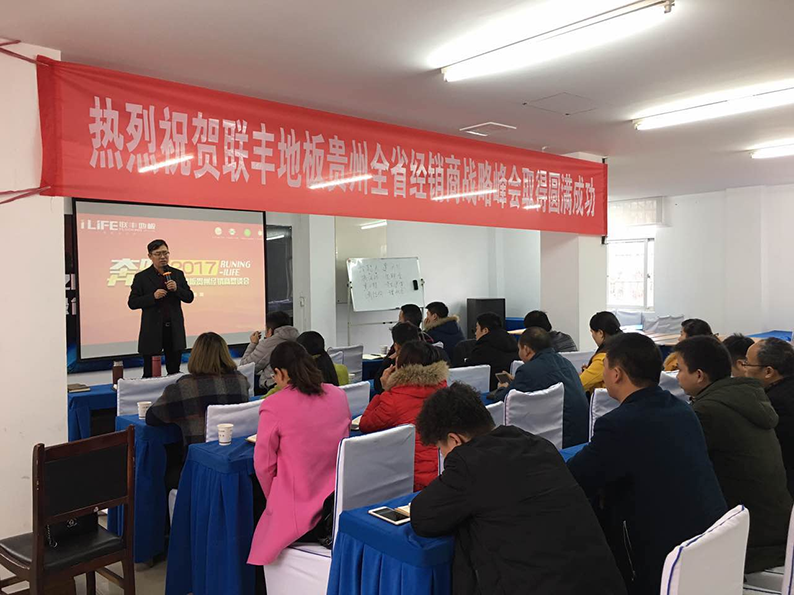 雄雞報(bào)春迎來(lái)新年新風(fēng),元月4—5日,奔跑2017——聯(lián)豐地板貴州經(jīng)銷商懇談會(huì)在貴陽(yáng)隆重召開,蘇州聯(lián)豐木業(yè)有限公司總經(jīng)理李玉明、聯(lián)豐木業(yè)貴州營(yíng)銷中心總經(jīng)理梁碩以及來(lái)自于全省30多個(gè)市縣的經(jīng)銷商參加了本次峰會(huì)。2013年成立至今僅四年的貴州營(yíng)銷中心已經(jīng)成為聯(lián)豐品牌強(qiáng)勢(shì)挺進(jìn)大西南,重磅打造橋頭堡的核心支點(diǎn)之一。