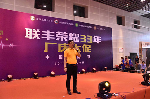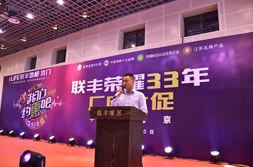 蘇州聯(lián)豐木業(yè)有限公司總經理李玉明首先致歡迎辭,他說,始創(chuàng)于1985年的聯(lián)豐木業(yè),至今已經走過33年的榮耀發(fā)展歷程,作為一家扎實做產品,傾心塑品牌的企業(yè),始終與消費者同行,每一年的大慶必然要用最優(yōu)質的產品,最優(yōu)惠的價格,最優(yōu)秀的服務來回報大家的厚愛和支持,去年的7·23,在這里,江蘇安徽兩省的近5000名業(yè)主與我們一起同慶,今天,震撼將再次起程!