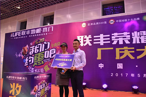 在全場數(shù)千名業(yè)主迫不及待的期待中,董事長沈建新激情宣布我們約惠吧——聯(lián)豐榮耀33年廠慶大促正式啟動!地板、木門兩大產品線,實木、實木復合、強化三大地板品類,全能王多功能實木地板、“全屋除醛”3600健康地板、熱佳能純實木抗地熱地板、“醛凈康”食品級健康地板、全能王靜音木門五大主打陣容早已讓人圍得水泄不通!空前絕后的優(yōu)惠,金花四濺100%中獎的砸金蛋、4999元的免單大獎,誘惑的花梨木三件套、冰箱、洗衣機、山地自行車等禮品,讓業(yè)主們紛紛下單搶購!