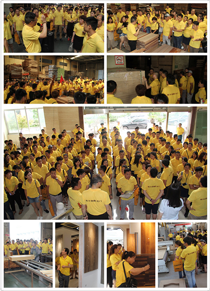 培訓(xùn)間隙,學(xué)員們走進(jìn)聯(lián)豐實(shí)木/實(shí)木復(fù)合地板、強(qiáng)化地板、木門三大生產(chǎn)基地。在整潔明亮的車間前,在井然有序、亞太地區(qū)最先進(jìn)的實(shí)木地板油漆線前,李總為大家詳細(xì)講解行業(yè)獨(dú)有的3-工序,分享了聯(lián)豐精品“零缺陷”出爐的全過(guò)程,學(xué)員們無(wú)不為聯(lián)豐如此過(guò)硬的質(zhì)量、優(yōu)秀的品質(zhì)所震撼,無(wú)不為擁有一個(gè)強(qiáng)大而又榮耀的品牌而自豪!