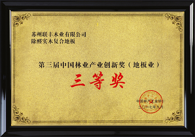 市場的青睞、行業(yè)的認可就是對聯(lián)豐創(chuàng)新精神的最大肯定,近日,聯(lián)豐地板憑借極富創(chuàng)新的除醛實木復(fù)合地板,從全國數(shù)千家地板企業(yè)中脫穎而出,獲授“第三屆中國林業(yè)產(chǎn)業(yè)創(chuàng)新獎(地板業(yè))”。轉(zhuǎn)型升級以來,環(huán)保、除醛的健康實木地板,讓聯(lián)豐的創(chuàng)新理念得以深度體現(xiàn),也讓聯(lián)豐獲得了市場的贊譽和行業(yè)的肯定。