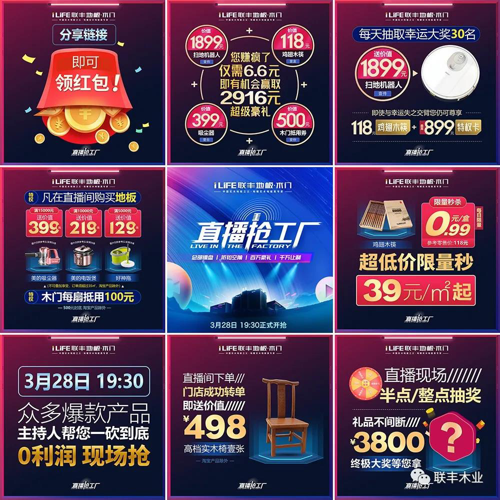 始創(chuàng)于1985年的聯(lián)豐,多年的發(fā)展歷程中,榮獲無(wú)數(shù)榮譽(yù):中國(guó)地板十大品牌、江蘇名牌、環(huán)境標(biāo)志認(rèn)證優(yōu)秀企業(yè)、中國(guó)環(huán)保地板品牌、中國(guó)林業(yè)產(chǎn)業(yè)創(chuàng)新獎(jiǎng)、中國(guó)森林認(rèn)證企業(yè)、中國(guó)木業(yè)百?gòu)?qiáng)企業(yè)、國(guó)家標(biāo)準(zhǔn)化示范企業(yè)等等,并以數(shù)十項(xiàng)創(chuàng)新成就被行業(yè)贊譽(yù)為:中國(guó)實(shí)木地板之父”。十年來(lái),每一次的廠慶大促都已成為世人矚目的焦點(diǎn),把盛典典禮轉(zhuǎn)化為最大的優(yōu)惠力度讓利于消費(fèi)者,讓更多的人來(lái)享受更實(shí)惠的價(jià)格、更優(yōu)質(zhì)的產(chǎn)品、更周到的服務(wù),3月28日“直播搶工廠”就是不忘消費(fèi)者初心的沿襲。分享鏈接,即享傭金:分享鏈接即可領(lǐng)最高200元紅包。幸運(yùn)抽獎(jiǎng),尊享特權(quán):僅需6.6元!即有機(jī)會(huì)贏取1899元智能掃地機(jī)器人+118元雞翅木筷+899特權(quán)卡,總計(jì)2916元的超級(jí)豪禮!真賺瘋了!限量秒殺,淘寶瘋搶:價(jià)值118元的雞翅木筷秒殺價(jià)僅0.99元/盒。地板秒殺價(jià)最低僅39元/m2。直播工廠,價(jià)格抄底:活動(dòng)當(dāng)天眾多地板、木門爆款產(chǎn)品,主持人幫您一戰(zhàn)到底,0利潤(rùn),現(xiàn)場(chǎng)搶。門店轉(zhuǎn)單,豪禮相送:直播間下單,門店成功轉(zhuǎn)單,非淘寶產(chǎn)品即送價(jià)值498元高檔實(shí)木椅壹張。定時(shí)抽獎(jiǎng),好運(yùn)連連:直播現(xiàn)場(chǎng)半點(diǎn)/整點(diǎn)抽獎(jiǎng),禮品不間斷,價(jià)值3800元的終極大獎(jiǎng)等您拿!在線下單,無(wú)需見(jiàn)面,此次直播活動(dòng)力度可謂十年來(lái)所罕見(jiàn)。