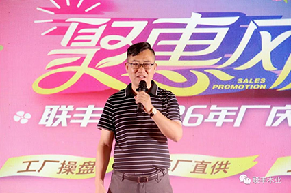 8月22日,聚惠風雨后·聯(lián)豐地板榮耀36年廠慶大促在三湘大地正式打響,來自于湖南八十家門店,1500余名業(yè)主分別匯聚長沙和懷化兩大中心城市,簽單一舉突破5萬平方米,給夏日的驕陽增添一道特別的風景,蘇州聯(lián)豐木業(yè)有限公司總經(jīng)理李玉明親臨長沙主會場助陣。此次是繼一周前廠慶大促在工廠總部取得大捷以來的再一次全國大型巡回促銷活動,聯(lián)豐品牌魅力再度閃耀三湘大地。
