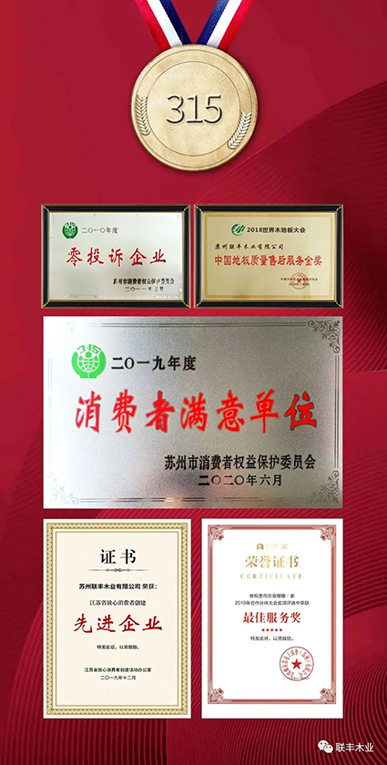 早在2010年,聯(lián)豐率先于行業(yè)推出專屬的4S優(yōu)+服務(wù)體系:3登門服務(wù)、1對1專屬定向精細(xì)化安裝、5免貼心保障,開通400全球服務(wù)熱線,建立24小時快速響應(yīng)機(jī)制,一系列舉措完全消除消費(fèi)者的后顧之憂!開啟國內(nèi)地板行業(yè)優(yōu)質(zhì)服務(wù)的先潮!多年來廣受市場和業(yè)內(nèi)權(quán)威機(jī)構(gòu)的一致認(rèn)可,“中國地板質(zhì)量售后服務(wù)金獎”、江蘇省放心消費(fèi)創(chuàng)建活動辦公室“先進(jìn)企業(yè)”、“消費(fèi)者滿意單位”,以及在與金螳螂·家的戰(zhàn)略合作中,連續(xù)多年榮獲“最佳服務(wù)獎”。這些殊榮無不是對聯(lián)豐服務(wù)快速響應(yīng)使命必達(dá)的肯定!