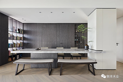 一間用地板鋪就的別致新中式餐廳,在觥籌交錯(cuò)間無(wú)形譜寫中秋節(jié)歡聚的儀式感,譜寫幸福家居生活的存在感。