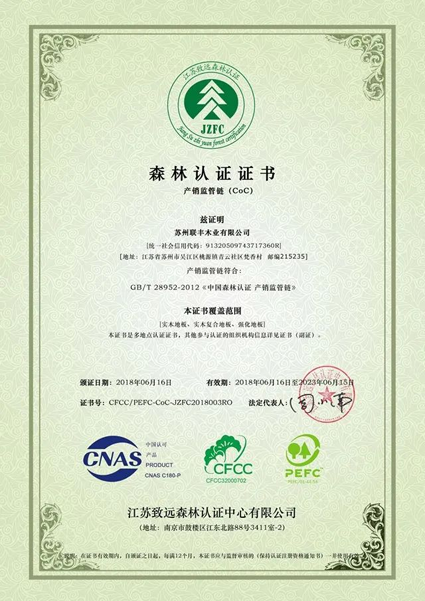 為踐行可持續(xù)發(fā)展的生態(tài)大計,聯(lián)豐地板堅持應(yīng)用合法木材,躬身保護(hù)森林資源,拿下地板類第一張“中國森林認(rèn)證CFCC-COC證書”。
