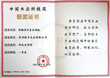 聯(lián)豐除醛實(shí)木復(fù)合地板獲“中國木業(yè)科技發(fā)明一等獎(jiǎng)”